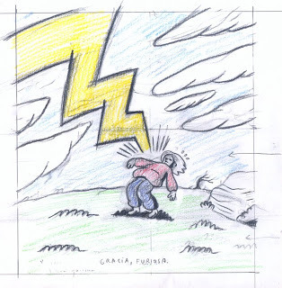 Esto es un estudio para una solapa de mi próximo libro con Sudamericana, que finalmente no usé. Tiene que ver con un año que se tornó difícil para mi, pero que, guiado por ciertas personas, pude terminar de surfear bien. A veces toda esa brea se transforma en luz realmente. Gracias a la gente que ayuda, que dedica su vida al otro. La frase "Gracia furiosa" es de Ram Dass. La imagen está basada en el ícono de "Peligro alto voltaje". Claro que en este caso el rayo no mata. No sé por qué estoy explicando todo esto. Pero ahí está. Una imagen no usada, que sin embargo dice mucho de cómo me siento ahora. Saludos.