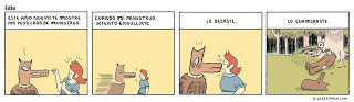 En la secundaria y en los últimos años de primaria me pedían llevar temperas y hojas tamaño A3. La maestra tiraba alguna consigna o enseñaba alguna regla sobre dibujo y todos copiábamos. No recuerdo a nadie, en ninguno de los tres colegios a los que fui, que se copara realmente con una clase de dibujo. Pero me puede fallar la memoria. Sí estaban aquellos con un talento impresionante para copiar la realidad, que disfrutaban del dibujo en si mismo, como actividad plástica. Disfrutaban construyendo una figura, con sus proporciones armoniosas, metiendo una sombra en su tonalidad justa, etc. También estaban los que tenían una aproximación más caricaturesca, obviamente. Pero a mi me producía una gran admiración el que "dibujaba bien". Aunque siempre lo vi como algo ajeno. Lo extraño es que, sin embargo, estuve dibujando toda mi vida. En bancos de madera, bordes de cuaderno, hojas sueltas. ¿Pero por qué surgían esos dibujos?