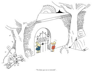 En la secundaria y en los últimos años de primaria me pedían llevar temperas y hojas tamaño A3. La maestra tiraba alguna consigna o enseñaba alguna regla sobre dibujo y todos copiábamos. No recuerdo a nadie, en ninguno de los tres colegios a los que fui, que se copara en una clase de dibujo. Sí estaban aquellos con un talento impresionante para copiar la realidad, que disfrutaban del dibujo en si mismo, como actividad plástica. Disfrutaban construyendo una figura, con sus proporciones armoniosas, metiendo una sombra en su tonalidad justa, etc. También estaban los que tenían una aproximación más caricaturesca, obviamente. Pero a mi me producía una gran admiración el que "dibujaba bien". Aunque siempre lo vi como algo ajeno. Lo extraño es que, sin embargo, estuve dibujando toda mi vida. En bancos de madera, bordes de cuaderno, hojas sueltas. ¿Pero por qué surgían esos dibujos?