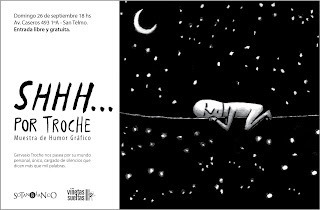 Mi amigo Gervasio Troche está mostrando sus originales en Sótano Blanco, en este mismísimo momento, en el marco del festival Viñetas Sueltas. Les recomiendo mucho que vayan a ver la muestra antes de Gervasio se tome el buque de regreso a Montevideo. Usando palabras del uruguayo, la muestra es un auténtico "despelote". El lugar es cerca de Parque Lezama, en una casa antigua con ventanas que dan a la Avenida Caceros, que además es una de las avenidas más lindas de Buenos Aires. Todo vale el...