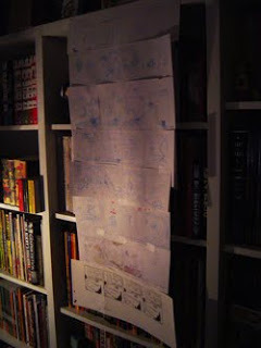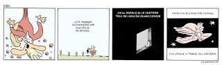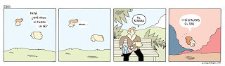 Estoy viendo si puedo generarme un nuevo hábito que consistiría en dejar "a secar" los bocetos de futuras tiras, durante un tiempo. Daniel Clowes explica en una entrevista al Comics Journal que él cuelga sus páginas terminadas durante dos meses antes de entregar. Las mira todos los días y va anotando errores. Dice que es una manera excelente de mejorar las páginas y de no arrepentirse después. No creo que a mi me sirva porque soy mucho más impulsivo que analítico. Y además porque mis tiras...