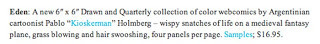MAY100990 EDEN GN $16.95MAR100913 JOHN STANLEY LIBRARY NANCY HC VOL 02 $29.95Two great ones from D+Q in their post-con push to get those summer debuts onto comics shelves. The second book is self-explanatory; the first is work from Pablo Holmberg, previews of which have popped up here and there.--------------------Tom Spurgeon, una persona a la que debo una gigantesca parte de mi educación comiqueril, recomienda Edén en sus elegidos de la semana. LINK.