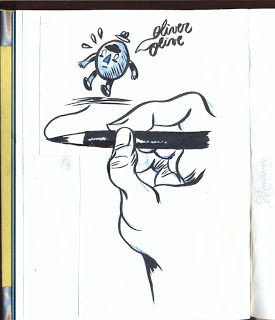 La tira que hice para Liniers en el 2008. Oliverio es lo máximo. Mi personaje preferido del comic argento. Acá algunos bocetos y la que finalmente quedó. Podría hacer un libro entero de Oliverio. Temeroso, corre, se ve amenazado. No entiende por qué se aferra a la vida. Es fantástico.