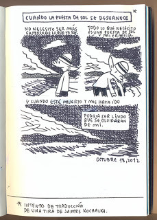 Intento de dibujo y traducción, al español, de una tira de James Kochalka (americanelf.com) del 18 de octubre de 2012.