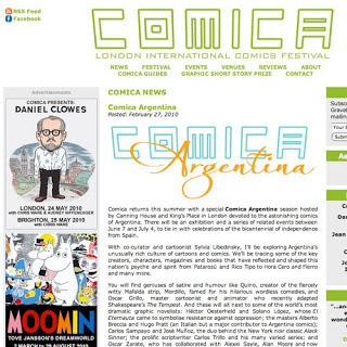 Paul Gravett , uno de los críticos de comic que más respeto en este planeta, me invitó a participar de Comica, una exposición mundial con base en Londres, que este año se centrará sobre el comic Argentino. Estoy copado. Hace años que leo sus libros y su site, para educar mi cerebro. Va a exponer dos tiras de Edén. Por favor Mister Paul, mandeme un par de pasajes también.