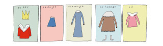 Javier Velasco (click en su nombre), un amigo que hace comics e ilustraciones, compartimos la admiración por la música del trovador Dylan, un dibujante que tuvo la idea de hacer un libro (que calculo que muchos le querrán publicar) todo con vestimentas y se salió con la suya, me dio este regalo. Me hizo mucha gracia ver cómo casi tengo un patrón que aplico para hacer vestimentas. Me genera ansiedad ponerme a pensar un vestido, por eso más o menos siempre los resuelvo igual. Lú tiene dos...
