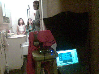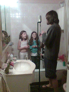 En las fotos: Tingo (Agustín Zucal), cantante de PELS, grabando los coros de "En busca del Edén", junto a su hija y una amiga.Recuerden que pueden ver el video en Youtube y enviarle este link a sus conocidos: