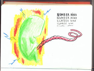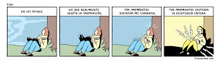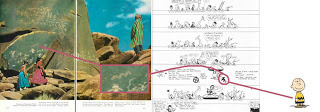 Mirando una National Geographic de los 50 encontré esta foto de una piedra en Monument Valley, el lugar que inspiró el Coconino County de George Herriman. En la misma piedra encontré uno de los dos símbolos que usaba Herriman, muy frecuentemente, en las tiras de Krazy Kat (el otro sería el círculo con la cruz). Ese mismo símbolo es el que inspiró luego el famoso diseño de la remera de Charlie Brown (su creador, Charles Schulz era fan de Herriman). Cuando Herriman se tomaba vacaciones se iba al Monument Valley, por lo cual es probable que haya conocido bien esa piedra pintada por los indios Navajos.