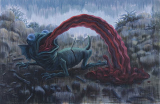 Esta es de las pinturas que se exhiben en la muestra "MEDIOGUSANO" en Casa L'Inc.