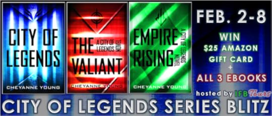 You can win a complete set of The City of Legends by Cheyanne Young AND (don’t you love that word?) a $25 Amazon Gift card. Click to enter the giveaway below, but before you go…Here is the interview I did with Cheyanne.