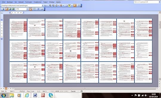 Dengang i juni var bogen på omkring 265 wordsider, og nu er den på 484, og jeg har ikke nået slutningen endnu. Jeg er nået frem til Finalen, men der er stadig sider at skrive, før serien er afsluttet.