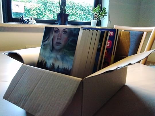 Papkassen indeholder eksemplarer af "Heksekunst" og "Følgesvenden", som aldrig er nået længere. Og snart har jeg - wuhuuuuu! - endnu flere bøger.