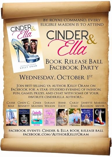 Hey everyone! In case you haven't heard, my next book, Cinder & Ella, is releasing and I'm having a HUGE launch party! Since Cinder & Ella is a "Cinderella" retelling, I've decided to throw my own ball! Come, show off your awesome dresses, bring your imaginary fantasy date, dance with Prince Cinder, feast until you're sick to your stomach, play games, enter endless giveaways, and mile with some of your favorite Cinderella authors!