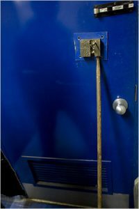 We got up and scrambled into the hallway, as our friend locked the illegal window gate, against FDNY code because it fastened from the inside with a key. Then, he put the thick steel bar of his Fox Police Lock in place and secured the front door.