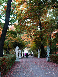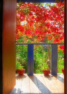 The play of hues beckoning outside. Twilight is purple, nearly sanguine. Veils aren't sanguine yet bold-- the yellow tinted vogue is kitschy. Red, ochre, green and topaz. The blond autumn plays boldly with the nature. Black is added to our cachepots. Some azure to the sky. Umbra and khaki of trees and filiage like scrolls of annals. The heady smells and airy cobwebs in thesunray. Ambergris of Kenzo and cinnamonunveiling someone's sins by scenting wrists. The autumn adorns you with needles of tweed.Lara Biyuts © 2011
