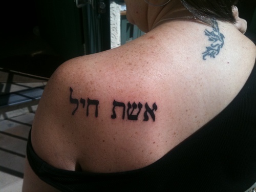 As we walked to the car, helmets in hand, harnesses jangling, the sun setting behind us, I thought, "Eshet chayil. I need that tattoo." I talked to Rachel, my best friend and female soulmate, about it the next day. She'd just gone through a really rough patch in her marriage, and now that tattoo will always be a symbol of that. So we made sure we got the Hebrew right and got the matching tattoos a few days later.