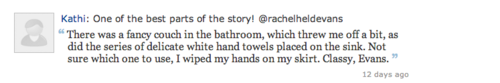 “I got the book, began reading and immediately got nervous. I would label myself a fairly conservative, evangelical Christian who relishes her job as a stay at home mom and housewife. Is this the exact kind of person Rachel’s book was going to be speaking against? My feathers started getting ruffled, but I kept reading. I kept reading because I honestly couldn’t stop…”