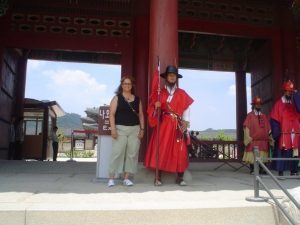 To get to the subway, I’d walk by several small shops, often times places where the family lived in their place of business. I could see families sitting on the floor, gathered around a hibachi, eating noodles out of bowls held under their chins, or sleeping the way many Koreans do, curled up on thin mats on the floor. But that was Seoul. Ultra-modern next to traditional. High tech office buildings next to one of the ancient temples or palace walls scattered around the city.
