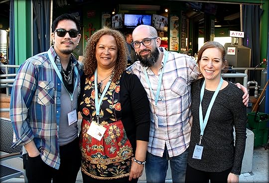 The team from the new gig with The Wrath-Bearing Tree, the professor, author and too cool for a website, Drew Pham, me, the author and lawyer you want on your side, Matt Hefti and the kick ass author, editor and photographer, Andria Williams. Their awesomeness rubs off so I plan to keep them all close.