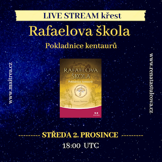 Předem vám prozradím, že na křtu, který bude z nakladatelství Maitrea vysílán živě, si můžete zasoutěžit o podepsanou Rafaelovu školu - Pokladnici kentaurů.