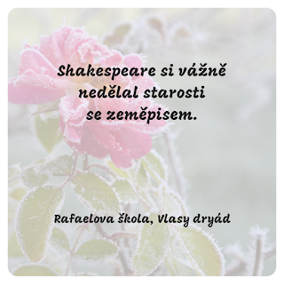 A nyní k tomu Shakespearovi. Básník elementálů se se svým dílem objevuje v každé knize Rafaelky, někdy více, někdy méně. V pátém dílu se Marina opět neúnavně snaží získat hlavní roli v Zimní pohádce, v níž se autor zmiňuje o Bohemii a přičarovává nám mořské pobřeží. A tak si z toho i v Rafaelce dělám tak trochu legraci. Celý konkurz máte v Dryádách, o něm nic nevyspoileruju.