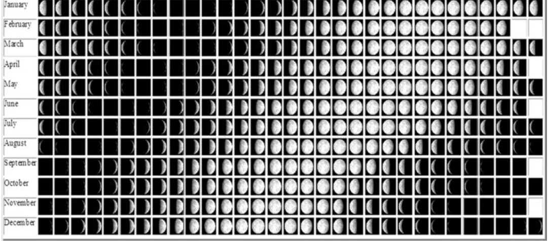 Ale dneska vám chci ukázat, jak lidi zabývající se astrologií seřadili fáze Luny pro rok 2019. Protože kalendářní měsíce Lunu nerespektují, posouvají se úplňky stále dopředu. Že je to pěkný obrázek?