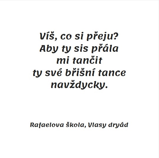 Tady na blogu bylo ticho, protože jsem pracovala na páté Rafaelce. Nyní jsou Dryády u paní ilustrátorky a ještě se na ně vrhne grafik, než je budeme opět kontrolovat po stránce jazykové a zda se při sazbě něco nerozběhlo, kam nemá. To byste nevěřili, co se může i v počítačové době stát. Když se v PC dodělávaly Nymfy i s obrázky, skočily nám dvě nymfy doprostřed dvojstránky...