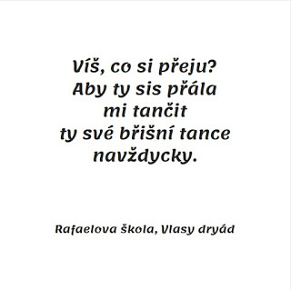 Přiznávám, že nyní jsem na chvíli Dryády pustila z hlavy, protože se nořím do Sirén, studuju kvůli nim znovu po tolika letech od studií na univerzitě jedno Shakespearovo drama, které ovlivní děj šestého dílu. Ale není to ani Hamlet, ani Romeo a Julie. A jak jsem na blog nechodila, nevěděla jsem o vašich komentářích, které jsem si tedy přečetla až dnes. Myslím, že odpovědí na ně je tento článek i s údajem, že Dryády budou v listopadu, a datum upřesním. Jinak máte asi starost o zápletku, o Marininu lásku. Ano, vše se zkomplikuje, což uvidíte už za chviliku, když vydržíte číst tento článek...