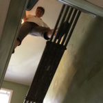 After Emily and I got an estimate to have a professional paint our stairwell ($10,000?!), we asked our neighbor Kurt who makes his living hanging wallpaper for his advice. Could we paint it ourselves? You bet. Kurt set us up with scaffolding. He even jumped on it, thereby proving it was trustworthy. He also examined the ceiling with its strangely peeling paint, the rim of painted-over wallpaper along the top edge, and the long horizontal crack running the length of our hallway wall. For ten grand the pros would have fixed these. Kurt waved them off. He ran his hand along the jagged split in the plaster. “Nope,” he said. “That’s your crack. It’s for keeps.”