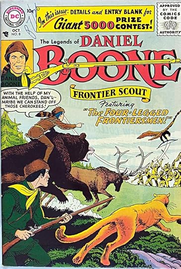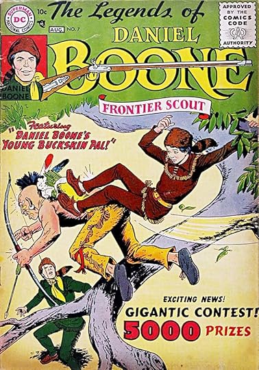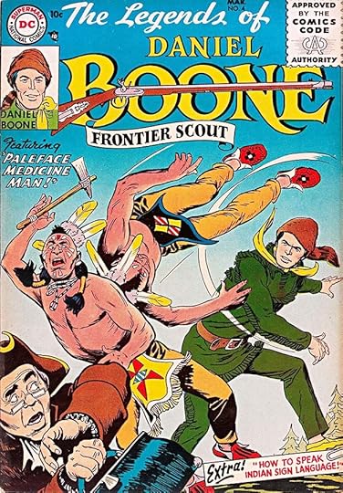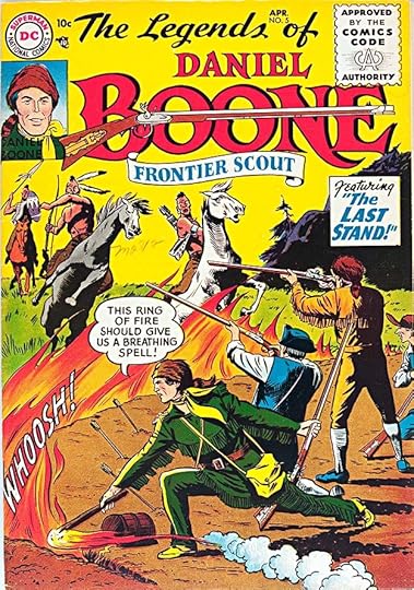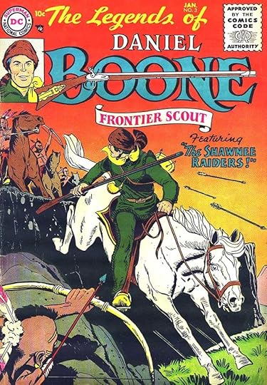 These two short-lived adventure series ran eight issues each in 1955-56. FRONTIER FIGHTERS was an anthology with three features per issue, while DANIEL BOONE was all about that character. Both were likely prompted by the success of Walt Disney’s TV version of Davy Crockett in 1954-55, a big hit. These books were probably edited by Jack Schiff and/or his assistants Murray Boltinoff and George Kashdan.