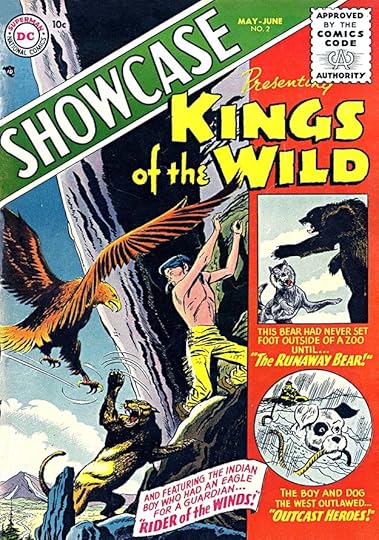 Issue #2 has a larger and more carefully designed Davy Crockett logo, indicating he’s the main star of the book, with the other features smaller in a circle. Oddly, Ira Schnapp rarely used circular captions on covers, while Artie Simek at Marvel used them often.