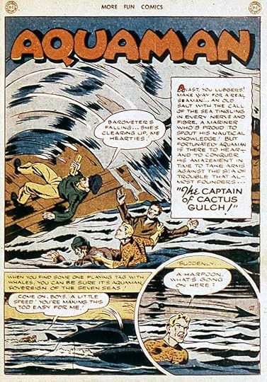 Issue #6 has an unusual color treatment for the story title at lower left, yellow letters with a red or brown outline against lavender. It works okay, and the word balloons are more important anyway.