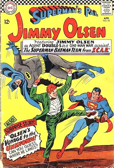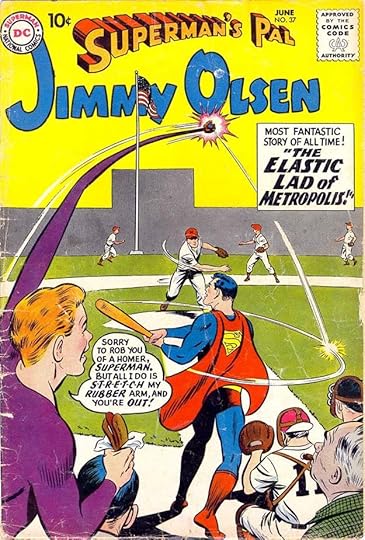 One of Jimmy’s more memorable repeated roles was as Elastic Lad, as in issue #37 from 1959, following the model of Plastic Man, but predating Marvel’s Mr. Fantastic and DC’s Elongated Man.