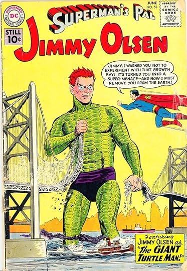Another memorably odd role was the Giant Turtle Man in issue #53 from 1961. Editor Weisinger recycled this idea from a Thrilling Wonder Tales pulp magazine he edited before he came to DC.
