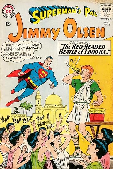 Jimmy’s roles got particularly silly when they were meant to be satirizing current fads, like this one on issue #79 in 1964, as The Beatles were taking America by storm. Yeah, yeah, yeah.