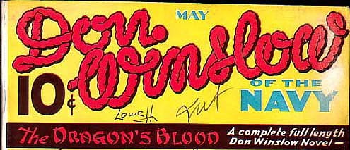 There’s very little work by Ira Schnapp in these two late 1940s titles from DC Comics, but I’m including them as part of my effort to list all of Ira’s lettering for the company. ROMANCE TRAIL ran for only six issues under editor Julius Schwartz, and is an early example of a relatively rare crossover genre, “romance western.” On the cover of the first issue, July/Aug 1949, is singing cowboy Jimmy Wakely who would soon get his own title. The logo is probably by Ira Schnapp, with ROMANCE in script made with rope. It reminds me of a logo I think Ira designed in 1937 for a pulp magazine published by DC Comics owner Harry Donenfeld, below, more on that HERE.