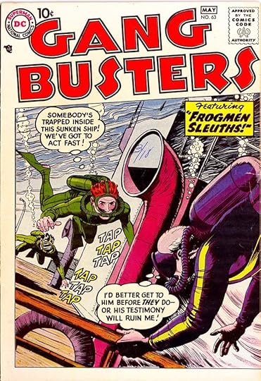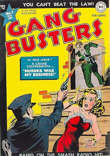 In 1948 DC launched a second crime comic also based on a popular radio show. This one had a regular protagonist, but he was unnamed, going only by the title of this comic. The style of this logo is similar to GANG BUSTERS, and the lettering on this cover is by Proto-Schnapp, who lettered many early covers and many stories in the first dozen issues. Perhaps Proto-Schnapp also designed the logos for both books.