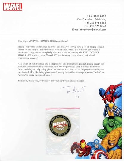 I also received this letter and commemorative brass cloisonné token from Marvel for the one page I lettered for MARVEL COMICS #1000. It’s the first “gift” I can recall ever receiving from the company.