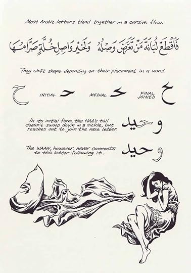 Habibi is an amazing work on many levels. There are over 650 pages each completely written, drawn, lettered and inked by Craig Thompson, a feat in itself. For this project, Thompson immersed himself in Islamic art and lettering, and the results are present on nearly every page in stunningly intricate work, like this one: