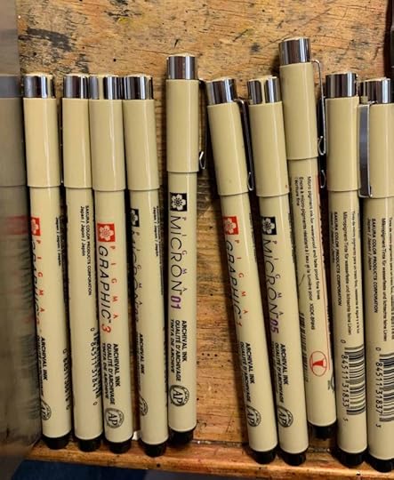 For markers, I researched ones that are waterproof, non-bleed, acid free, fade resistant and long lasting. I came up with a short list of brands, and went to my local Michaels art and craft supply store to see if they had any of them. They had two choices: Pigma Micron, above, the one I went with, was a little cheaper than Pitt. I bought a variety pack of sizes and also some extras of the ones I thought I would use most.