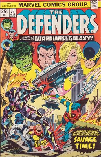 “Guardians of the Galaxy” is from DEFENDERS #26, Aug. 1975. The colors have been reversed from what was lettered, a common practice, done by making a negative photostat of the original lettering.