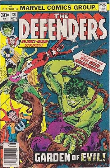 “Garden of Evil” from DEFENDERS #36, June 1976. Here the black fill around the letters gives Evil a dirty look, but that works well.
