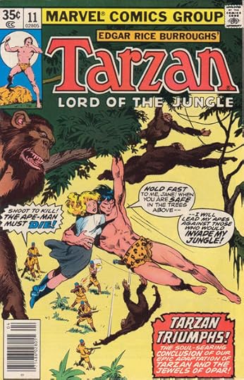 “Tarzan Triumphs” and the balloon at lower right from TARZAN #11, April 1978. After pasting a photostat of the caption at lower right on the cover, someone has made the outline thicker. Not sure why, it was fine before.