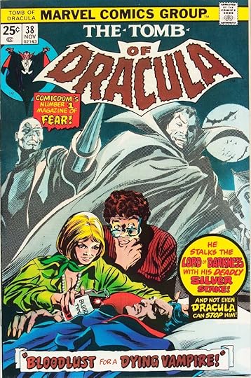 “Bloodlust for a Dying Vampire” by Danny Crespi from the cover of TOMB OF DRACULA #38, Nov. 1975. This title is rather weak for a cover, perhaps a rush job by Danny.