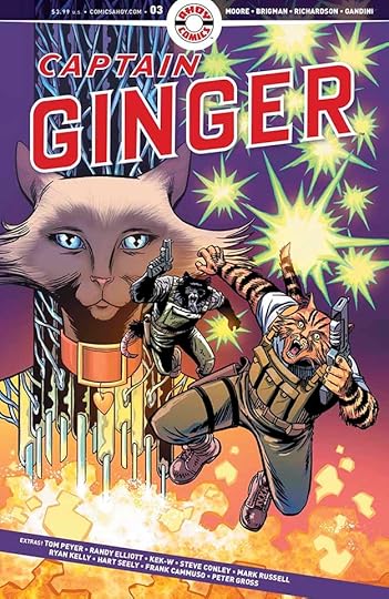 I can’t quite decide if the main cat characters in this book are just winging it, or if they have a better idea of how to get by in their world than it seems. The Captain and his right paw, Mittens, are risking their lives in a jury-rigged ship to follow a signal they think might be from another cat ship like theirs. How this might help them is not clear. Once they’ve gone, things continue to go wrong on The Indomitable. One ray of hope comes from a message pulled from the computer archives featuring the feeder (human) who “created” them. His hologram seems willing to help. Ginger and Mittens have reached a destination, but found only more trouble.