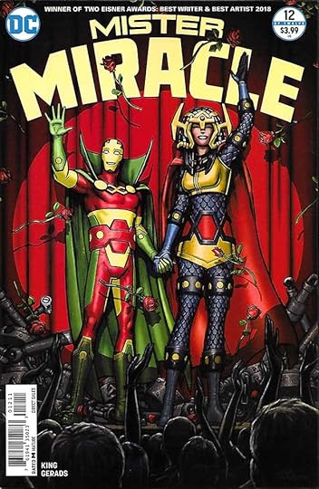 The final issue of this series wraps things up, but also leaves many things unclear. Scott Free and Big Barda have a quiet domestic life with their son and soon a daughter in a condo in Los Angeles. Funky Flashman, the one-time Stan Lee parody created by Jack Kirby, is their babysitter. They apparently commute by Boom Tube to Apokolips, where they take on Darkseid’s minions for control now that Darkseid has been defeated. In this issue, the ghosts or digital hallucinations of the many characters who have died in this series talk to Scott about his life, his choices, and what his actual reality might be. Nothing is clear. Did he succeed in committing suicide in issue #1, making all this an afterlife experience? Is he trapped on Apokolips dreaming of his family life? Is he in hell or in heaven? Those are all possible answers. Scott’s answer remains, “I can always escape.” And no doubt he can and will escape into another reality in the future, in which this entire series will be largely ignored. Kind of frustrating, but that’s comics for you. I had hoped for more of a resolution, but I did enjoy reading each issue of the series, including this one.