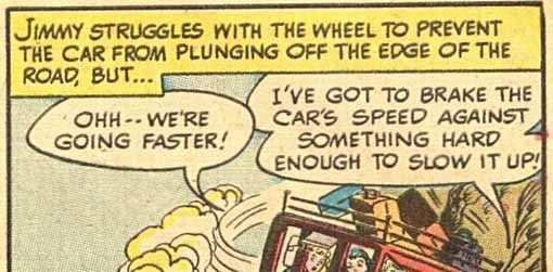 A detail from page 5 has a typical Gaspar burst balloon with all straight lines. The one slightly odd thing is the squared letter A’s in the word AVALANCHE, a variation which appears in this issue but not later work, and only on emphasized words.