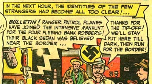 This full story page has more radio balloons, the same initial cap style in the first caption, which also ends in the same kind of scrollwork. I felt I had my case. I made large printouts of both the “Desert Justice” story from JW and this one from SA on my 11 by 17-inch printer and marked them up with notes pointing out all the similarities, and mailed them to Gaspar.