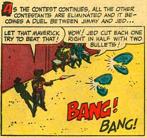 The only problem was the story titles. Except for “The Stranger from Sunburst Bend,” they didn’t look like Gaspar’s work. This is quite puzzling. Possibly editor Julie Schwartz didn’t have confidence in Gaspar’s title work and had someone else letter them. Or perhaps Gaspar was still finding his way with lettering styles for titles on this western comic.