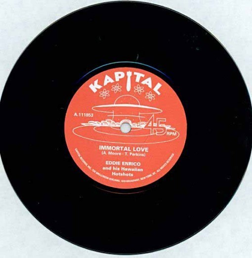 In case you’re interested in the fine print on the label, it reads “KAPITAL RECORDS, INC., THE BRILLCREEM BUILDING, 1619 BROADWAY, NEW YORK, NY. ALL RIGHTS RESERVED.” (Except on the B side where it says “ALL RIGHT RESERVED.” Oops.